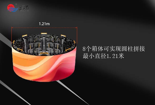 ●单个箱体内外弧可调0-45度,8个箱体拼一个圆,最小直径1.21米